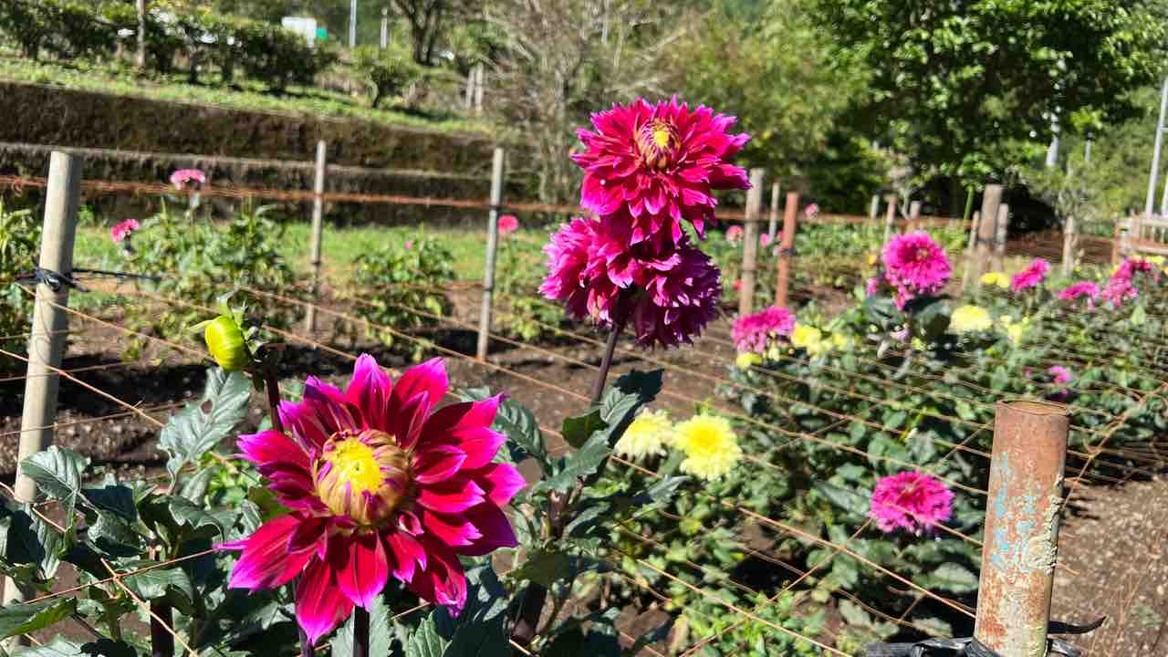 カテゴリー 開花状況 9月20日開花状況 投稿者 作成者: 両神山麓花の郷ダリア園 投稿日 2025年9月20日 一番花を咲かせた株は二番花を咲かせる準備に入り、花数は少なめですが、その分蕾が増えています。 蕾からの開きかけのダリアも見ることが出来ます。 気温が下がったことで、切り花で人気の「黒蝶」も本来の発色に。 受付前では鉢植えの販売も始まってます。今年のうちに球根も出来ますよ。 「色々な子がいるねぇ」と、本日ご来園のお客様も楽しまれていたようで良かったです。